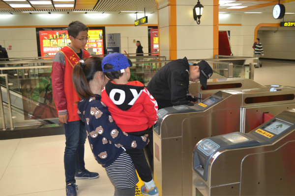4月15日,哈尔滨工程大学船舶工程学院“小红帽”志愿者服务队联合黑龙江省军区社区居民委员会开展哈尔滨地铁站“文明交通引导员”志愿服务活动。“小红帽”志愿者服务队队员黎宇豪、邢森林带领20140111,20140121团支部参加此次志愿服务活动。