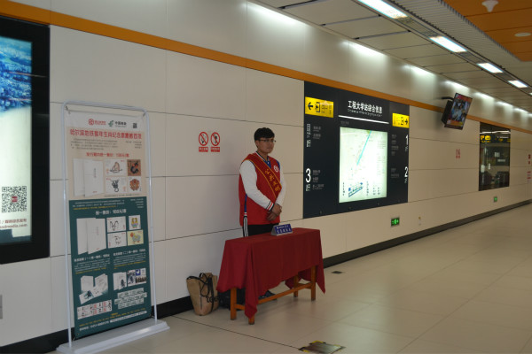 上午7时30分,“小红帽”志愿服务队来到哈尔滨地铁“工程大学站”。在与“工程大学站”站长简单说明相关情况后,“小红帽”志愿服务队得到了地铁站工作人员的支持。此次“文明交通引导员”志愿服务活动在地下一层及地下二层两部分进行。“小红帽”志愿服务队在地下一层设有志愿服务台,为来往的乘客提供实时的交通服务信息、介绍“工程大学站”及出口方向、帮助乘客解决问题。在地下二层,“小红帽”队员协助地铁安保人员维持秩序,保障乘客安全。