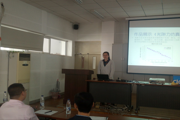 本次评分共有五个项目,分别是A类的履带式图像传输平台及头盔显示系统、D类的太阳能自导航无人水文监测船和E类的新型表面等离子共振系统的研制与光纤集成的研究、控制飞升级微液滴的环形芯光线光镊研制、自加速beasel光束生成器件研制及光阱力特性研究。参评人介绍自己的科研项目并安装调试好相关机器之后,便可以开始答辩,评委就各个项目表达自己的看法,并进行评分。