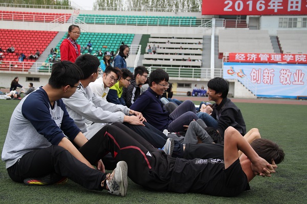 5月14日13时,经济管理学院于校北体育场举办2016年趣味运动会,经济管理学院学工办主任韩微、团委书记董治安、学生会秘书长张春雨及经管学院大一大二全体同学参加本次运动会。