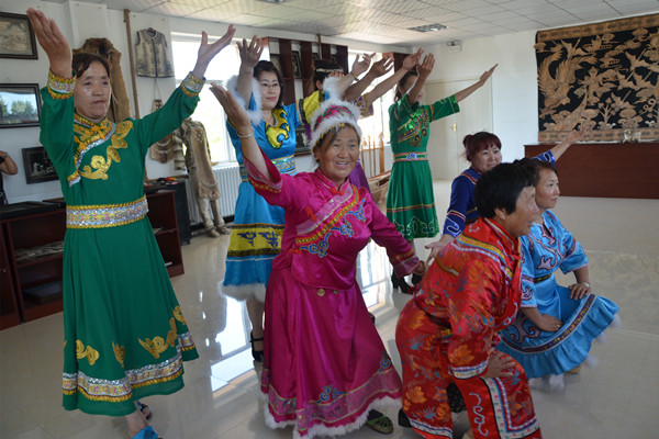 活动最后,村民们自行组织,表演一支赫哲族舞蹈作为离别礼物欢送队员们。