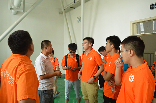 7月20日上午9时整,自动化学院“三下乡”志愿者服务队全体成员来到北大荒公司玉米加工厂,参观玉米加工生产线。自动化学院团委书记兼2014级本科生辅导员潘强、2013级本科生辅导员马金驰带队参观。