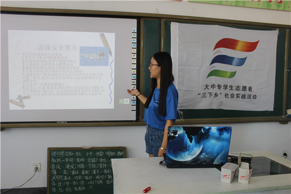 8月8日下午14时整,水声学院三下乡志愿者服务队前往巨源镇中心小学举办安全知识讲座。本次活动由水声学院团委副书记组织,部分部长参与。