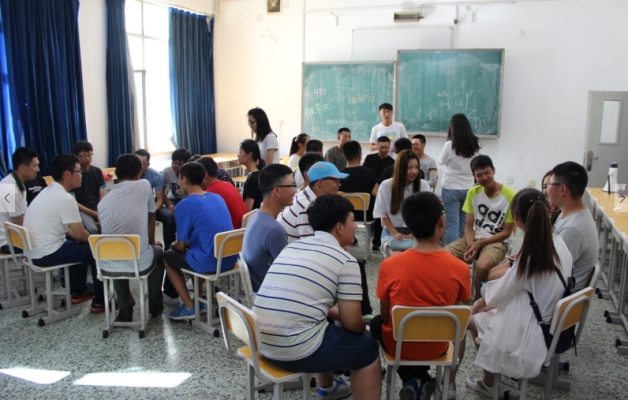 在新生见面会上,负责主持各班新生见面会的各部门部长、副部长依次进行自我介绍,各班新生按顺序介绍自己。介绍环节结束后,各班级依次进行“滚雪球”、“抢凳子”、“蹲萝卜”、“你画我猜”等游戏,大家有说有笑,气氛欢快融洽。最后,王帅以及各部门部长、副部长和新生们集体合影留念。