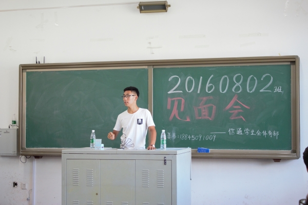 8月28日下午2时,信息与通信工程学院于21B教学楼部分教室举行新生见面会。新生见面会以信通学院2016级自然班为单位,信通学院团委副书记王帅、学生会主席李岩屹、学生会副主席张帅、学生会副主席姜韦、团委和学生会各部门部长及副部长主持并参与各班新生见面会。