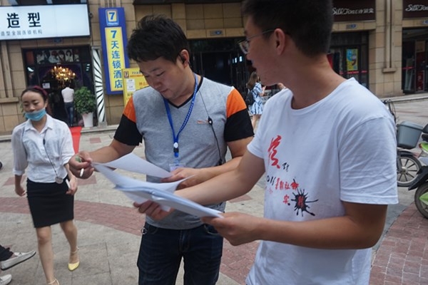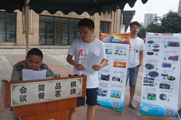 8月27日下午,核学院“核创未来”暑期社会实践团到达成都富城国际广场进行核电知识宣传及调查问卷的填写。