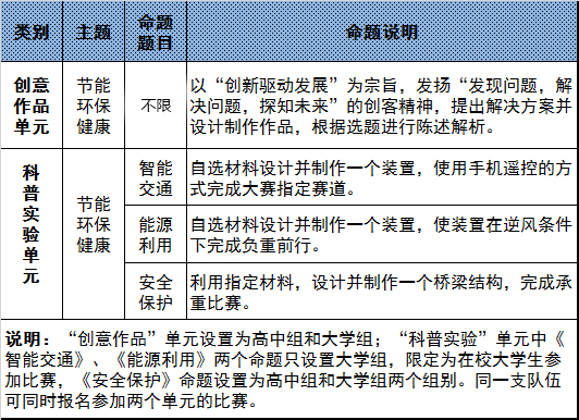 其中,科普实验单元将根据社会科技趋势更替及升级竞赛命题内容,旨在通过固定形式的命题,让同学们能学以致用,自己设计、制作出参赛作品参加竞赛,鼓励更多的青年学生积极参与科普实践,激发青年学生对科技创新的热情。