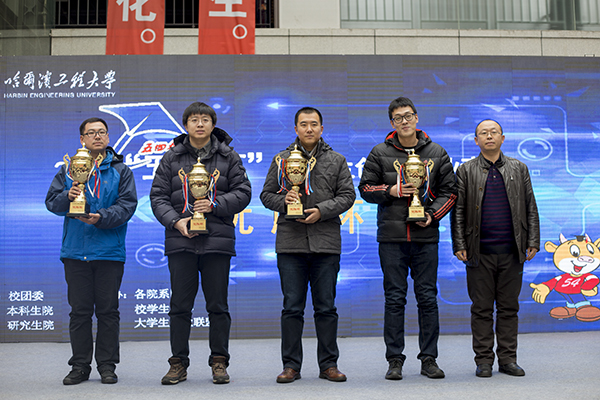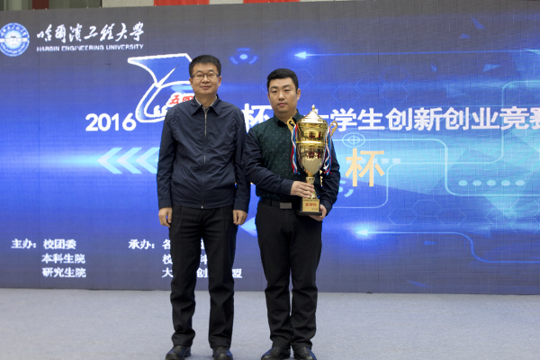 动力与能源工程学院、计算机科学与技术学院、船舶工程学院、信息与通信工程学院获得2016年“五四杯”大学生创新创业竞赛优胜杯。毛继泽宣读名单并为获奖团队颁奖。