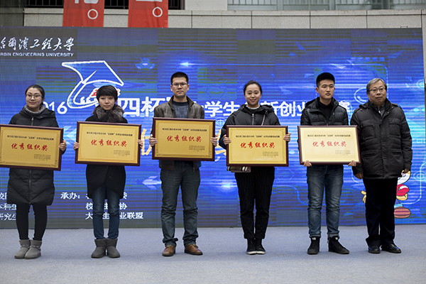 航天与建筑工程学院,机电工程学院,材料科学与化学工程学院,人文社会科学学院、马克思主义学院,国防教育学院获得2016年“五四杯”大学生创新创业竞赛优秀组织奖。王秦辉宣读名单并为获奖学院颁奖。