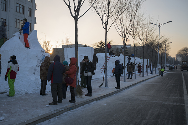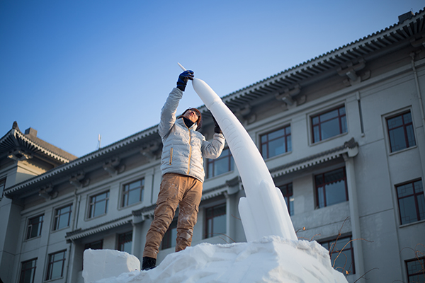 1月4日,2017第九届国际大学生雪雕大赛在哈尔滨工程大学拉开帷幕。