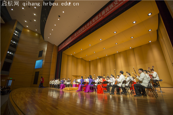 1月6日19时整,2017第九届国际大学生雪雕大赛民族交响音乐会于启航剧场举行。本次音乐会由哈尔滨民族乐团进行演出。国家一级指挥家孙南航教授担任指挥。校党委书记谷焕民,副校长、党委常委张志俭参加本次音乐会。