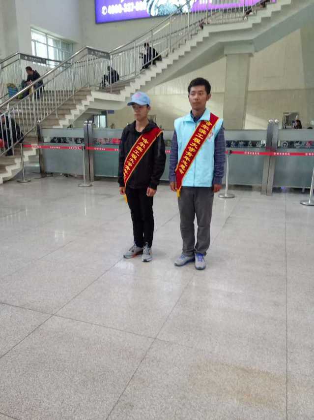 志愿者们身着天蓝色制服,身披绶带,精神抖擞、面带微笑,给所有旅客贴心温暖的服务。为旅客引路不到目的地不离开,帮助旅客取票细心地讲解每一个步骤,站岗时认真严肃、一丝不苟。志愿者们把“为人民服务”这个大心愿变成自己的小行动,以实际行动传递哈工程学子的热情与正能量。