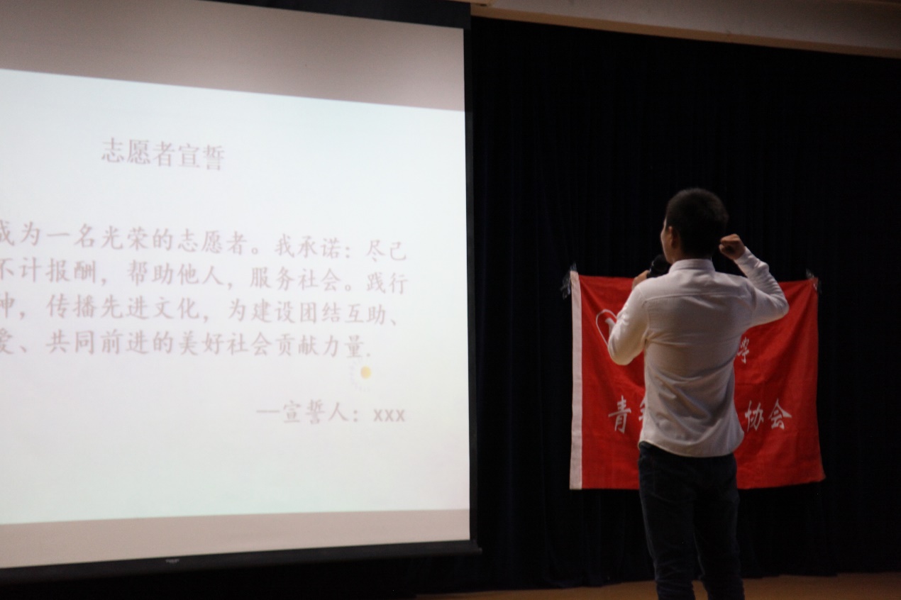 见面会开始,全场人员起立高唱《志愿者之歌》,“不忘初心,服务于人”的信念再一次在青年志愿者的心中燃起。大会正式开始,孟驰带领全体与会志愿者宣誓,过肩的右手是铮铮的铁誓,庄严的气氛是责任的担当。宣誓过后,各部门部长向全体人员介绍各自部门和工作情况。节目演出登场,志愿者的倾情演唱、幽默又不失风度的小品还有那纷动的吉他弦片,无不展现着当代青年志愿者多才多艺、阳光向上的风采。演出结束,团委兼职副书记李明非发表讲话,给青协工作以肯定和新的期望。