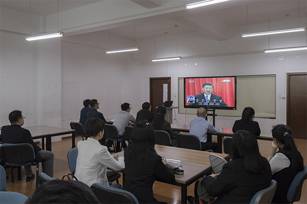 5月4日,纪念马克思诞辰200周年大会在北京人民大会堂举行,中共中央总书记、国家主席、国家军委主席习近平出席大会并发表重要讲话。校团委全体人员,各院系团委书记以及优秀骨干学生代表于启航330室集中观看视频直播。