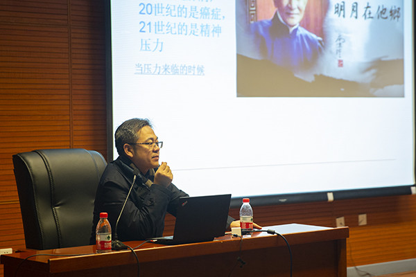 张忠宇分享心理健康及抑郁症方面相关知识,列举谈论部分事例并分析说明其中反映的心理健康问题。同时,张忠宇讲解心理健康方面的部分误区,提醒学员注意避免,并帮助学员正视压力,鼓励学员从多角度看待问题。
