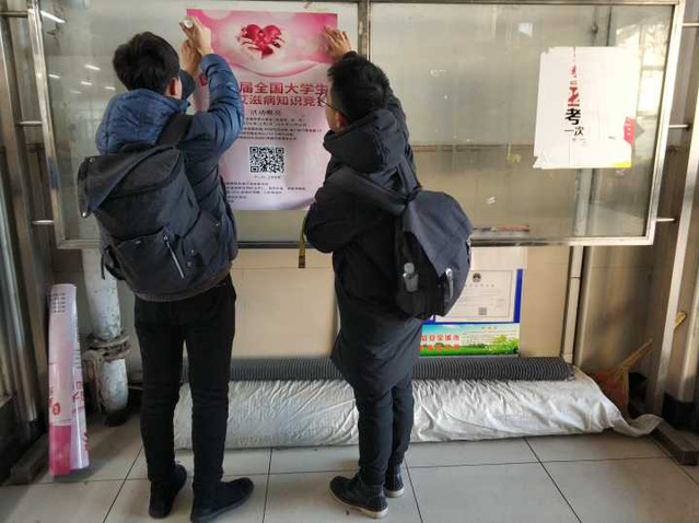 12月2日,第31个“世界防艾日”的第二天,材化学院团委金手指志愿服务队在哈尔滨工程大学社区开展防艾宣传进社区活动,由师嘉都、陈嘉庆和夏宇轩带领志愿者们参加本次活动。此次活动的主题是宣传预防艾滋病知识竞赛,让人们正确面对艾滋病。