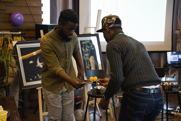 联谊会以采访形式开场,现场音乐响起,气氛热烈。主办方为队员们免费提供水果、饮品、零食等,参赛队员们进行抢凳子、你画我猜、谁是卧底、夹乒乓球等游戏,褪去比赛的紧张和疲劳,放松心情,结交更多的朋友。在温馨的环境里,大家一起聊天分享收获与快乐,一起从游戏中感受到交往的乐趣。中外联谊会上,各参赛队队员交流比赛心得及雪雕雕刻技巧,畅谈比赛过程中的趣事与见闻,并交换对当前社会热闻的看法,分析时代潮流趋势、分享青春故事。