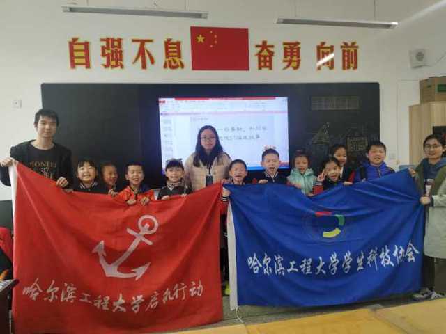 4月12日,由哈尔滨工程大学校学生科协主办航建学院团委承办的“启航行动”在哈尔滨市育红小学开展,航建学院龙燕妮和舒瑶参与活动,主讲人是舒瑶。