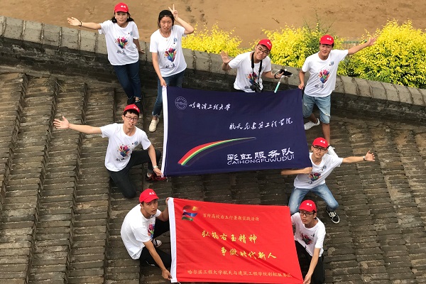 航建学院彩虹志愿服务队成立于2005年9月,隶属于哈尔滨工程大学航天与建筑工程学院团委,志愿活动内容主要包括社区、敬老院服务、大中专学生“三下乡”、爱心支教、校内外大型活动、社会服务等,共开展活动500余次,参与人次达9000余人次,累计时长达25500余小时。服务队与五家单位共建大学生社会实践基地,积极面向社会开展志愿服务活动。服务队连续多年获团中央、团省委表彰,多次获校级“优秀志愿者服务集体”等荣誉称号。在2018年全国大中专学生志愿者暑期三下乡社会实践“千校千项”成果遴选中,服务队开展的“学习右玉精神,关爱留守儿童”项目获得“最具影响好项目”;在2018“天翼·互联网+教育”进乡村暑期社会实践中,服务队所写调研报告获评为“优秀报告”。服务所开展志愿服务活动曾多次被人民网、中青网、学校共青团官网、黑龙江省学联等媒体报道。