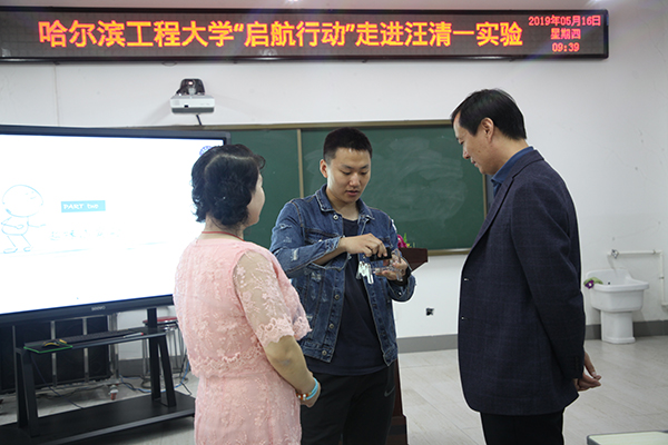 5月16日,哈尔滨工程大学启航行动闭幕式暨2019班助一奖助学金发放仪式于汪清县第一实验小学举行,团县委副书记、教育局党办主任王玉娜,国家发改委就业司县发改局副局长韩非池,哈尔滨工程大学物理与光电工程学院辅导员王法天,汪清县第一实验小学校长赵德、党支部副书记李蕾、大队辅导员姜萍,汪清县第四小学校教导处副主任白钊,东振社区留守班级负责老师刘淑芹,哈尔滨工程大学启航行动全体成员,哈尔滨工程大学第九届“梦想接力”研究生支教团吉林分队全体成员,汪清县第一实验小学、第四小学校部分学生参加本次活动。