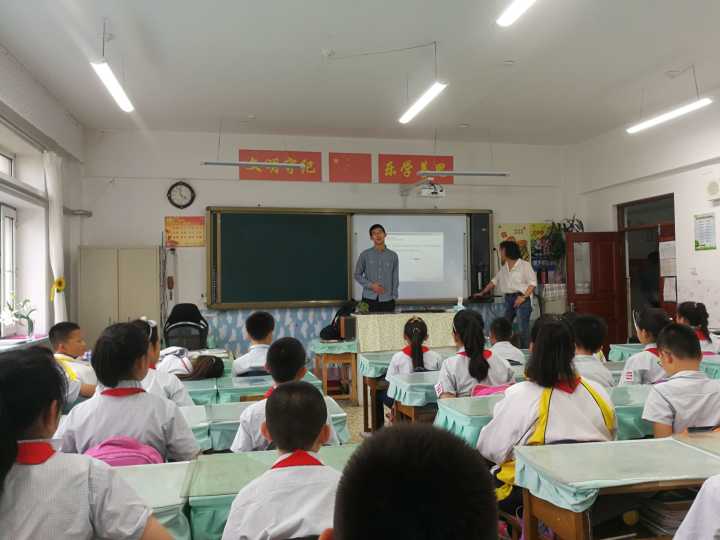 志愿者们向该小学学生进行自我介绍,以问答方式活跃班级气氛。本次支教所讲内容为“五四运动”,李泰达通过PPT和视频结合的方式讲解这一历史,希望该校学生们积极进取、磨练意志,秉持爱国主义信念,坚持五四运动精神,勇于实践,奋发向上,砥砺前行,争做有理想、有本领、有担当的新时代青年,同时以有奖回答鼓励该校学生发表自己的观点,并讲解者总结相关知识。