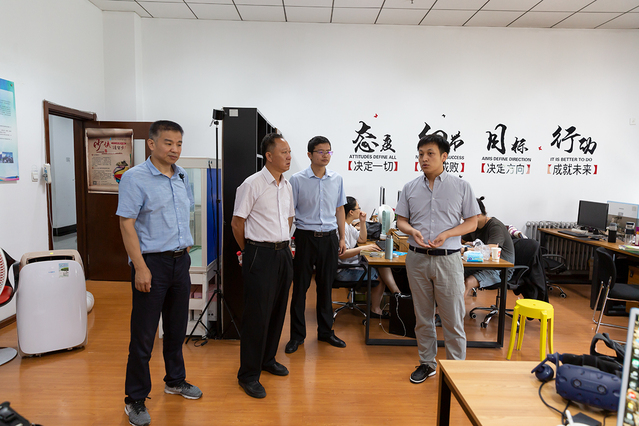 7月9日,市科协党组书记、副主席王凯甲在校团委书记史波陪同下对我校“创立方·大学生创客工场”进行调研。