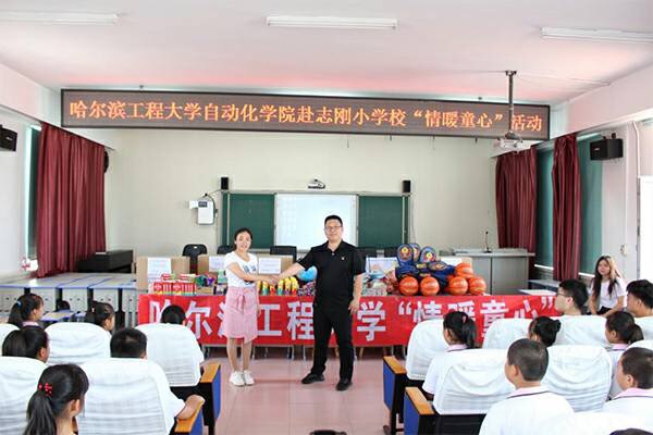 6月30日,自动化学院新航向志愿服务队于齐齐哈尔市龙江县志刚小学开展捐赠活动。自动化学院学生会秘书长兼2016级本科生辅导员郭涛组织本次活动,自动化学院团委常务副书记李紫璇,学生会主席赵煜博,学生会副主席王琦,生活部部长王成,辅导员助理王浩人,志刚小学大队辅导员江雪及部分学生代表参加。