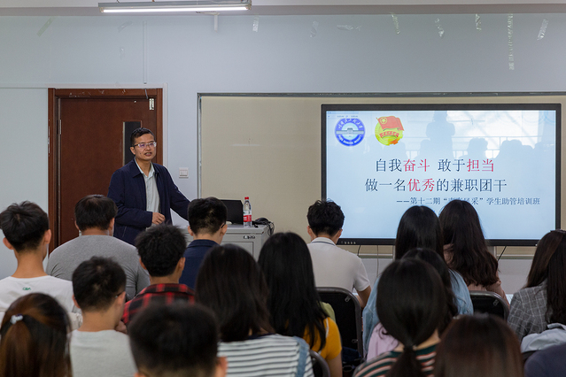 9月10日,第十二期“青春风采”学生助管培训班于启航活动中心338室召开。培训以“自我奋斗 敢于担当 做一名优秀的兼职团干”为主题,校团委书记史波担任培训主讲人。