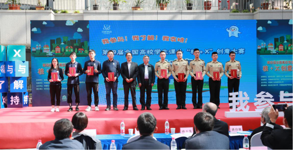 对话评审结束后,与会领导、专家为获得一二三等奖的学生颁奖并合影留念。本届大赛共24所高校学生报名参加,通过高校初评推荐作品104件,经组委会专家初审、终审,评选出一二三等奖13件及优秀奖80件。