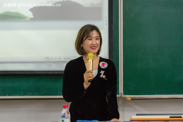 讲座过程中,马佳为在场学生讲述京剧欣赏有关知识,运用丰富的事例激发学生们对京剧的热情。马佳为在场学生分别讲述中国人应该了解京剧的原因、外国人对京剧的狂热、京剧欣赏入门、四大名旦这四部分内容。其间,马佳对我国京剧的“生、旦、净、丑”进行详细介绍,并讲述自己的京剧演出经历。同时,马佳对京剧中的“开、关门”“上、下船”以及“游泳”等动作进行示范,并鼓励在场学生上台进行尝试。