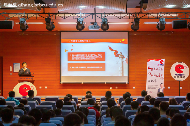 10月29日,由校团委主办,校“阳光论坛”策划中心、自动化学院共同承办的第858期阳光论坛讲座:“弘扬革命文化,传承红色基因”庆祖国七十华诞特别讲座于启航活动中心学术报告厅举行。黑龙江大学马克思主义学院副教授、中共中央党校中共党史专业博士文记东担任主讲嘉宾。