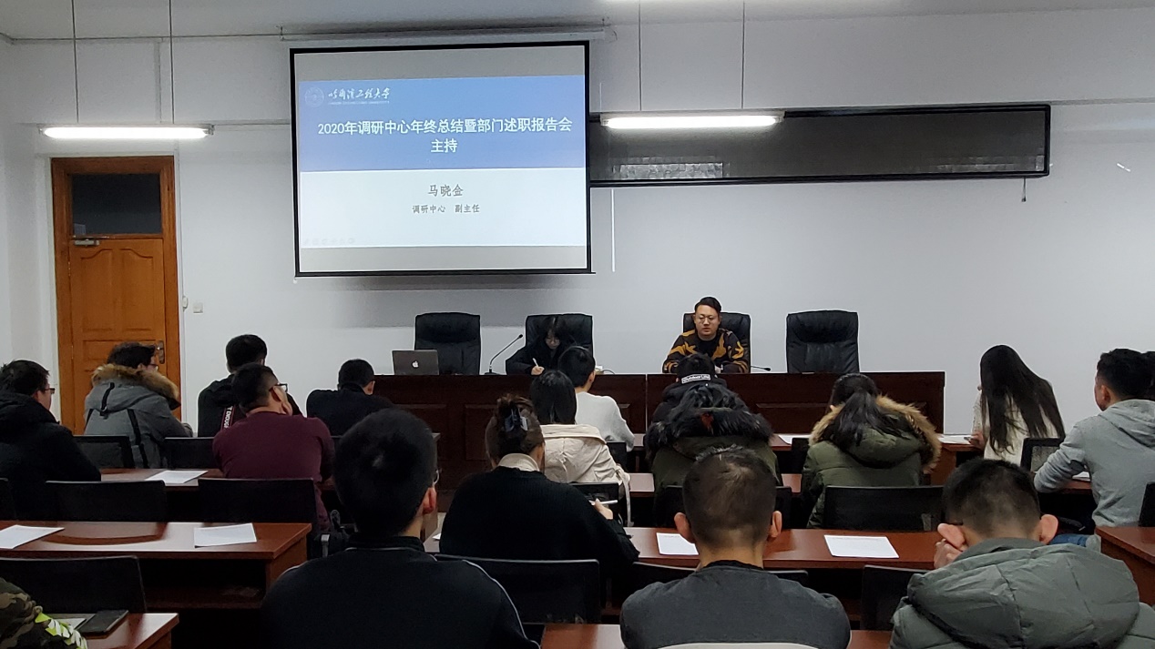 12月13日,校青年调研中心在主楼420室召开2020年年终总结暨部门述职报告会。本次会议由调研中心副主任马晓金主持,调研中心全体成员参会。