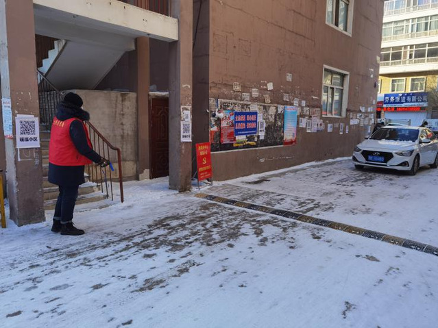 我的主要工作有两项:一是排查核酸检测情况,二是在社区出入口监督扫码出行。相较于社区基层工作人员来说,这两项工作已算是非常轻松了,所以我更应该努力做到最好。在志愿服务的14天内,我与其他两名志愿者共同走访了幸福社区内500余住户,排查出了所有未进行全民核酸检测的住户并上报社区,完善了核酸检测情况;在出入口监督扫码出行时,我监督扫码的同时也帮助了中老年人进行书面登记,或是帮助住户搬运一些生活用品等。虽是在-25°C的低温下,我仍然在劳动中汗流浃背!