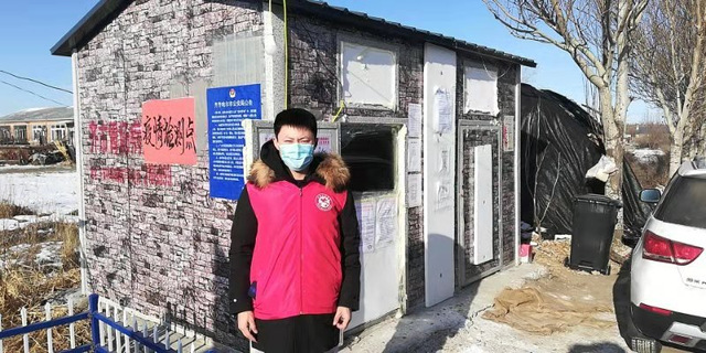2021年的寒假,黑龙江疫情猝不及防的再次反弹。我的家乡在黑龙江佳木斯市,面临家乡严峻的疫情形势,我主动加入到抗疫队伍中,同镇政府和孟家岗中心校的工作人员一起准备全民核酸检测,进行现场布置、流程引导的工作,希望可以为家里的防疫工作贡献一份微薄之力。天气的寒冷不能阻挡我们工作的热情,我们要用自己的温度来温暖这个寒冬,也相信在我们的共同努力下可以顺利度过这一关。