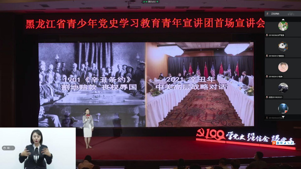 3月22日,由黑龙江省委宣传部、共青团黑龙江省委主办的黑龙江省青少年“学党史、强信念、跟党走”党史学习教育青年宣讲团首场宣讲报告会顺利举行。此次宣讲围绕党的历史,通过讲述党的故事、革命的故事、英雄的故事,引导广大青年学史明理、学史增信、学史崇德、学史力行,培养爱国主义情怀,让红色基因、革命薪火代代相传。