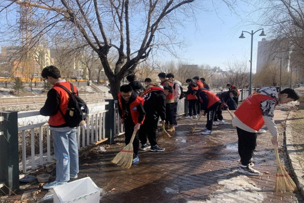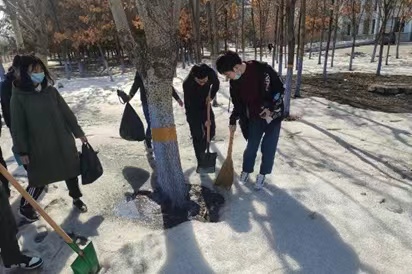 8.外语系团委将党史教育融入实践活动,组织“英才”志愿者服务队开展军工操场清扫活动。在参与实践的过程中,引导学生坚定信念,砥砺前行。