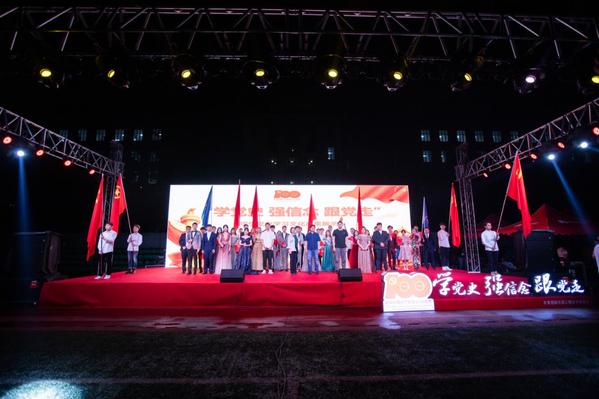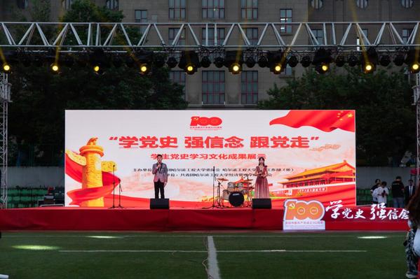 6月10日19:00,哈尔滨工程大学“学党史、强信念、跟党走”学生党史学习文化成果展示在哈尔滨工程大学南体育场举行,来自各个学院的团员青年表演了精彩节目,充分展示党史学习成果。