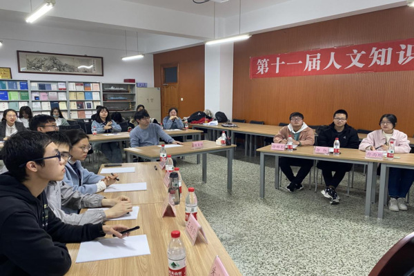 为丰富学生人文知识、激发学生对人文知识的兴趣、展现学生人文情怀,人文社会科学学院举办人文知识竞赛,并邀请本学院教师殷亚迪担任本次比赛评委。比赛过程激烈有趣,学生们积极参与。