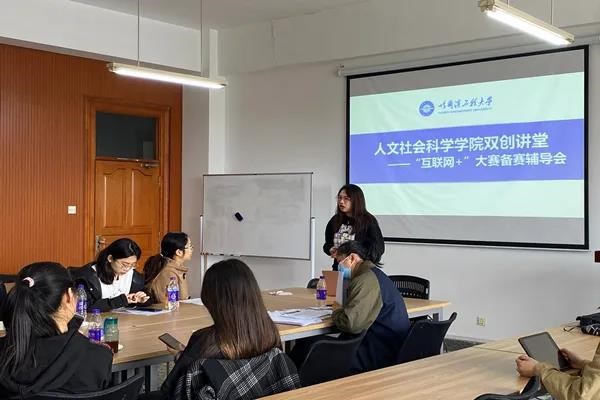 为讲授“挑战杯”参赛注意事项与指导答辩,人文社会科学学院举办“挑战杯”赛前培训会并邀请人文学院团委书记李瑶,社会学系教师张翼飞、侯博文、赵岩到场指导,人文学院参赛队伍成员参加并表示受益匪浅。为讲授“互联网+”参赛注意事项,对各组参赛项目现场答辩情况进行一对一点评指导,人文学院举办“互联网+”赛前培训会并邀请团委书记李瑶参加。全体双创导航员、往届“互联网+”优秀项目负责人和全体“互联网+”参赛作品项目负责人积极踊跃参加活动。为向学生们介绍人文学院学生创新创业情况,培养学生们创新创业精神,增强创新创业能力,提高个人综合素质,人文学院举办双创讲座,邀请团委书记李瑶担任主讲人,介绍校内普通型、重大型立项,校外省级、国家级立项,校内五四杯创新、创业比赛,校外“超一流”赛事,以及各类答辩PPT的制作、经验、技巧。