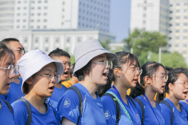 7月27日,2021年青少年高校科学营哈尔滨工程大学分营营歌比赛于南体育场举行。策划组志愿者担任比赛裁判,全体营员参与比赛。
