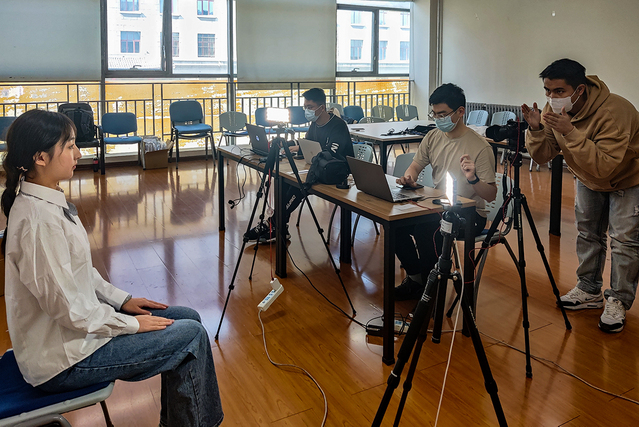 为响应学校疫情防控要求,避免人员聚集,各同学以学院为单位按照预定计划分时段前往335室。活动场地分为等候区、选衣区和拍摄区。前来拍摄的同学们在工作人员的引导下有序完成了拍摄。