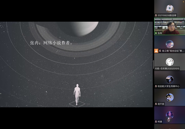 10月30日,由校团委承办,校“阳光论坛”策划中心承办的第870期阳光论坛讲座于腾讯会议线上举行,并在校团委微信视频号进行同步直播。知名科幻作家张冉担任主讲人。