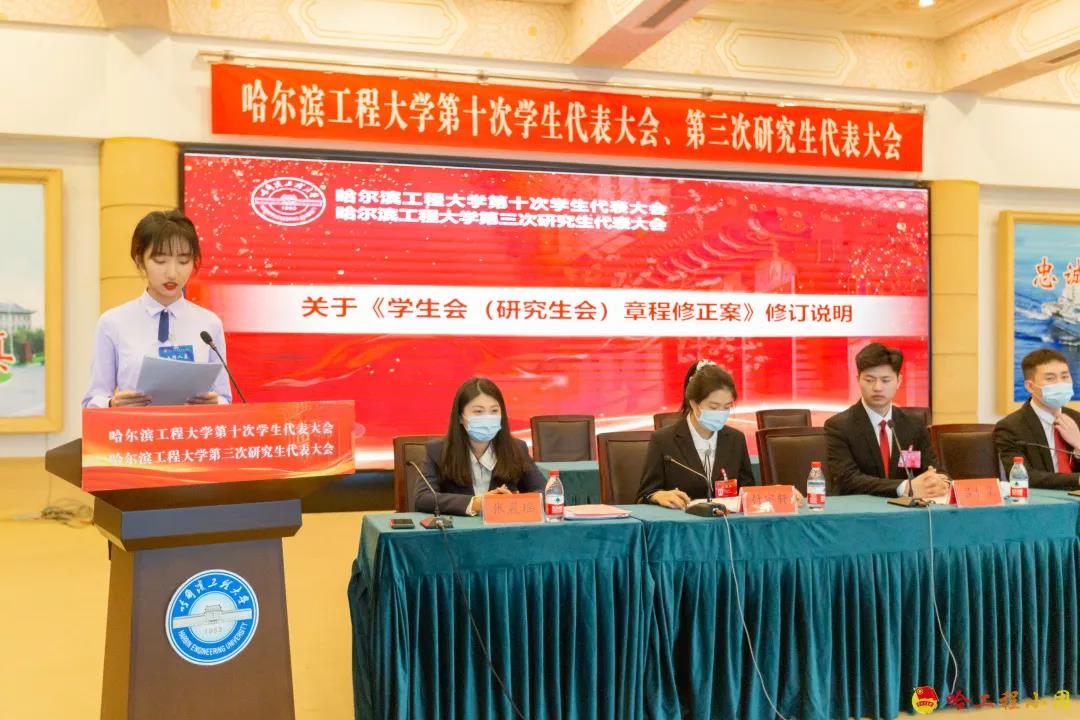 大会审议通过了《哈尔滨工程大学学生会(研究生会)章程》。修订《哈尔滨工程大学学生会(研究生会)章程》是本次学生代表大会的职权和重要任务,《哈尔滨工程大学学生会(研究生会)章程》能够贯彻和体现《中华全国学生联合会章程》《黑龙江省学生联合会章程》《高校学生代表大会工作规则》《学联学生会组织改革方案》的基本精神,适应新形势下的新要求,符合我校实际情况,是我校学生会、研究生会工作进一步走向科学化、规范化、制度化的里程碑。