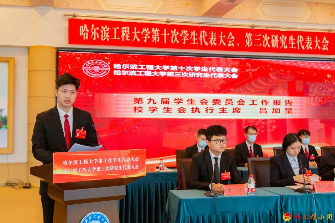 大会产生哈尔滨工程大学第十届学生会委员会委员、第三届研究生会委员会委员和哈尔滨工程大学第十届学生会主席团成员、第三届研究生会主席团成员。马晓金等35名同学当选第十届学生会委员会委员,邓炜龙、杨瑜婧、杲旭、孟飞阳、郭琦当选第十届学生会主席团成员,杨瑜婧担任第十届学生会主席团执行主席;于文凯等31名同学当选第三届研究生会委员会委员,史佳卿、江佳正、李杭宸、高山、高珊当选第三届研究生会主席团成员,江佳正担任第三届研究生会主席团执行主席。