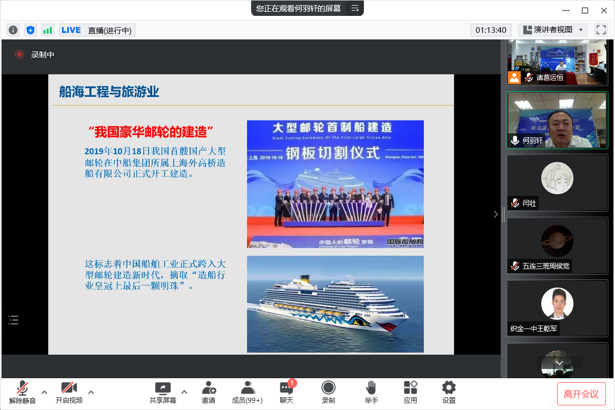 7月27日,2022年青少年高校科学营哈尔滨工程大学分营于科学营云平台举办大国重器讲座。哈尔滨工程大学船舶与海洋工程学院郭君老师担任主讲人,全体带队教师、营员及志愿者参加本次讲座。