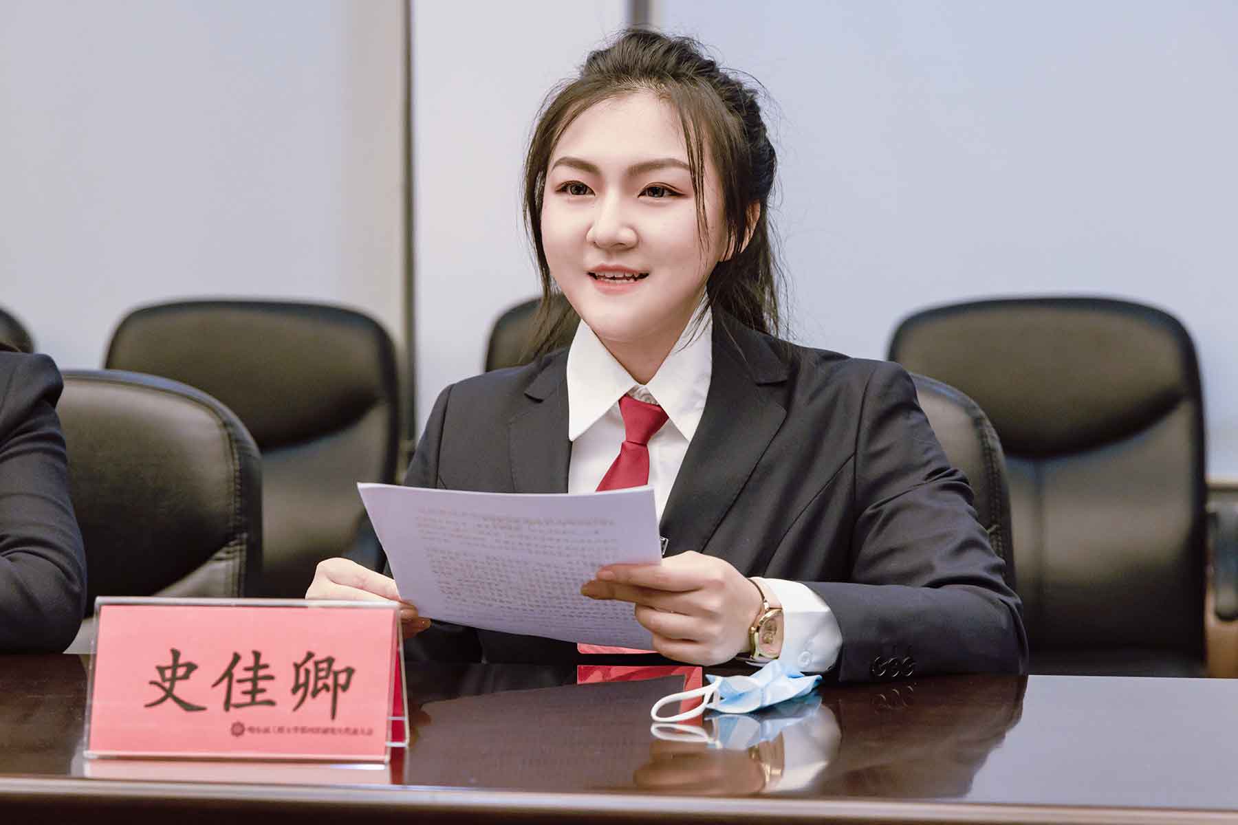 第四届研究生会执行主席史佳卿表示,感谢团委老师对研究生会的指导和帮助,衷心感谢同学们的信任和支持,在今后的一年中,校研究生会将坚持以习近平新时代中国特色社会主义思想为指导,以加强对同学的政治引领为根本,以全心全意服务为研究生服务为宗旨,发挥学校联系广大同学的桥梁和纽带作用,明确职能定位,聚焦主责主业。今后一年工作主要有三点,第一,增强服务意识,完善自身建设,努力成为研究生利益的忠实代表者和坚定维护者;第二,弘扬创新精神,营造学术氛围,力争成为校园文化风尚的积极促进者;第三,紧扣时代脉搏,立足长远发展,促进全体研究生成为新时代的开拓者。
