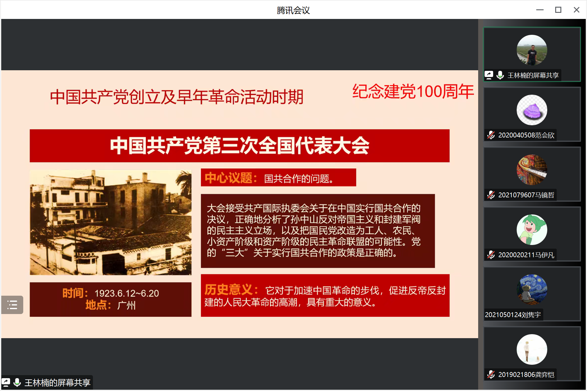 3月25日,第十六期青年马克思主义者培养工程“军工英才”培训班培训通过腾讯会议方式开展。本次理论培训主题为“中国共产党的辉煌历史”,王林楠老师担任主讲人。