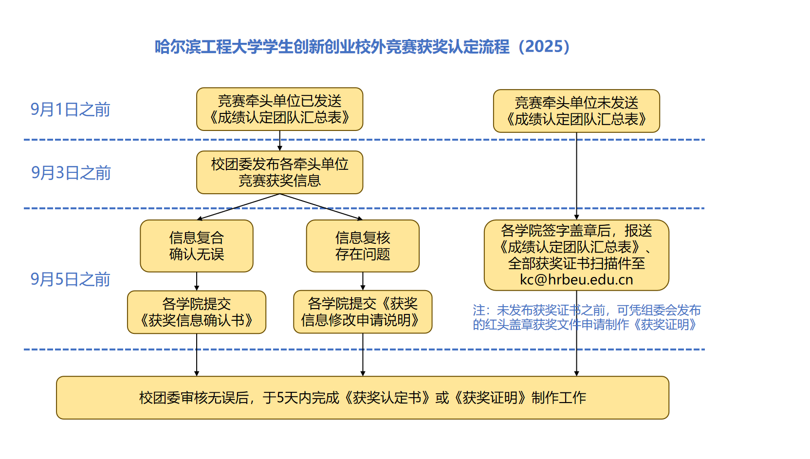 哈尔滨工程大学学生创新创业校外竞赛获奖认定流程(2025)如下图所示: