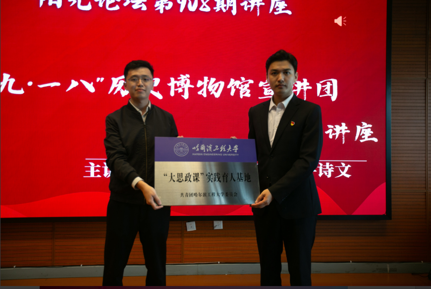哈尔滨工程大学向沈阳“九·一八”历史博物馆颁授“大思政课”实践育人基地牌匾,校团委副书记张羽鑫完成授牌。这一举措为师生搭建沉浸式历史学习与思政实践的平台,让红色教育从课堂延伸至真实历史场景。