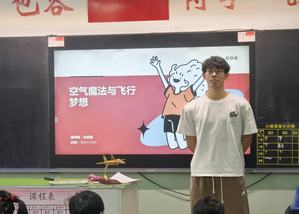 经济管理学院朱佰盛聚焦“伯努利原理”,以“沉重的飞机如何飞上天?”的提问引发学生思考。核心环节中,宣讲者带领学生动手操作“吹不走的纸条”实验,通过观察纸条上飘的现象,用“空气赛跑”的生动比喻,讲解“流速快、压强小”的科学原理,并关联飞机机翼形状,解释升力的产生机制。随后,宣讲者讲述扎根龙江的“哈军工”先辈们在艰苦条件下钻研航空航天技术的感人故事,结合国产大飞机C919、“吉林一号”卫星等东北工业成就,展现了从“制造”到“智造”的转型历程。进一步激发同学们对航空航天领域的兴趣,将个人梦想与家乡发展、国家强盛紧密联系起来。